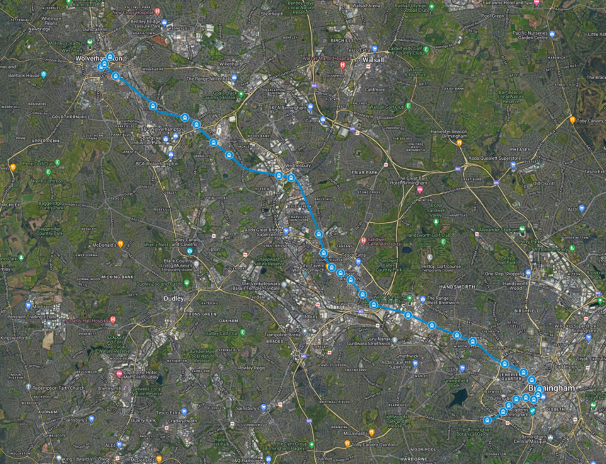 I’ll put the event pins in zones 3 to 4 at Priestfield, The Cresent, Loxdale, Bradley Lane, both Wednesbury stops & Black Lake.